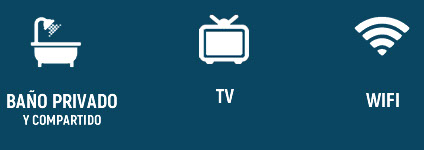 Cómodas habitaciones con baño privado y Compartido con agua caliente. Todas las habitaciones disponen de: